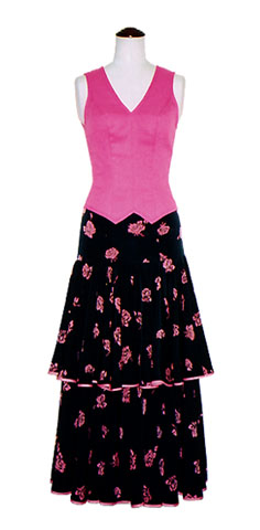 あざやかなピンクと黒の組み合わせが印象的な一着。